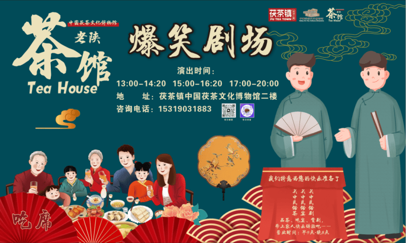 中国茯茶文化博物馆地处泾河新城茯茶镇。博物馆一楼是集合了茯茶史文化、制作过程和古泾阳老街风貌的文化展陈空间,由茯茶溯源、千年宗祖、丝路飘香、筑茶工艺、金花奥秘、陕西茶商、茯茶圆梦七大部分组成;二楼设有明清特色的老陕茶馆,春节期间为观众准备了脱口秀专场和曲艺专场等演出节目,还有关中特色的泾阳“十三花”等民俗宴。