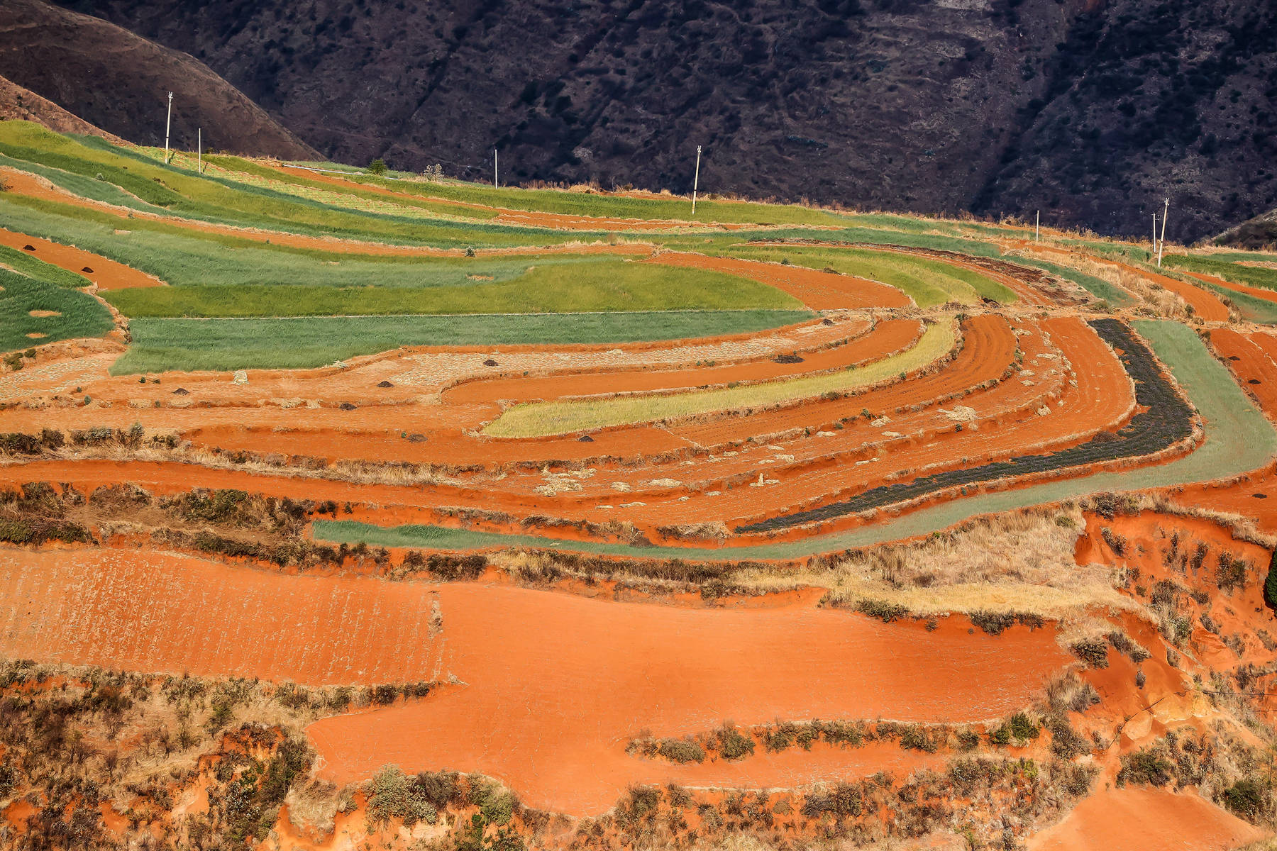 东川红土地走进了历史上的高光时刻,这是社会的发展,是时代的机遇,也是人为的推动。这种发展和推动,坚持了生态和谐,坚持了生态原有的功能,就和元阳梯田那样,是人与自然的和谐共生。不是那种开山造景式,以破坏生态为代价的发展,那种以污染好山好水为代价,移植的人文景观,彰显的只是土豪、资本的野蛮和恣意。