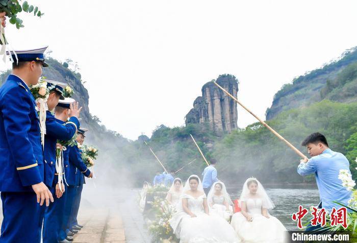 “火熖蓝”九曲溪上迎新娘。 张丽君 摄