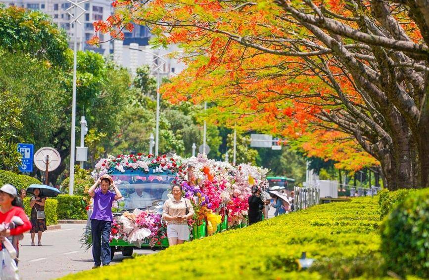 云南普洱:凤凰花开红似火 夏日美景醉游人