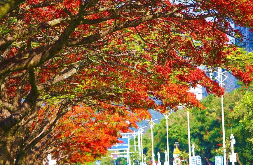 5月的普洱市思茅区,火红的凤凰花开满了大街小巷,石龙路的凤凰花更是惊艳无比,花朵红似火焰,形成一道道美丽的风景线。