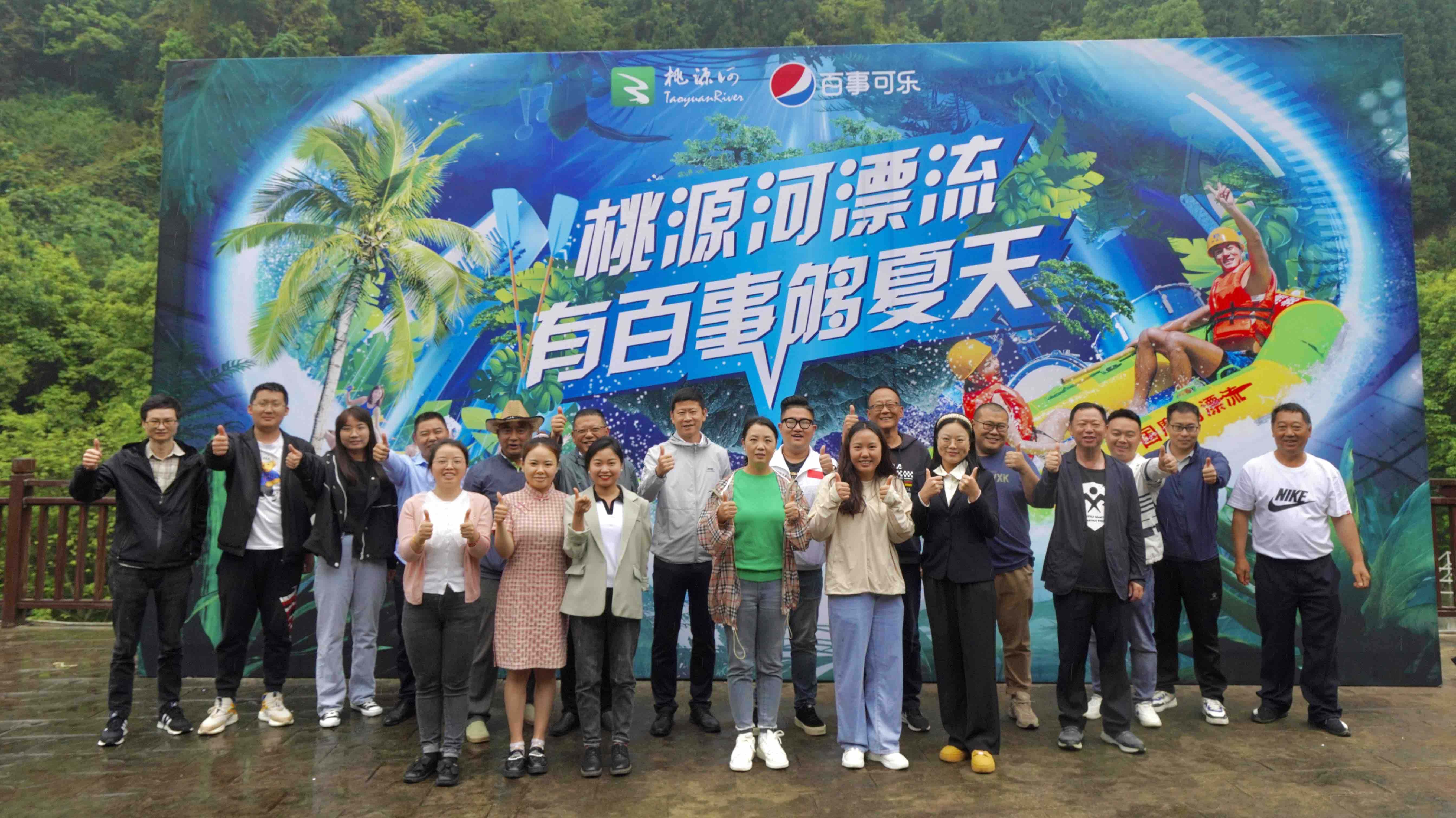 2023年5月19日上午,桃源生态旅游度假区、桃源河国家AAAA旅游景区2023年爽游桃源活动季首个夏日产品魔幻漂流顺利开漂,标志着桃源河户外漂流船新版本——“桃源漂流·百事可乐”正式上线。众多旅游平台、网红大咖、各大媒体纷纷出席活动,活动当日还吸引了众多游客慕名而来。