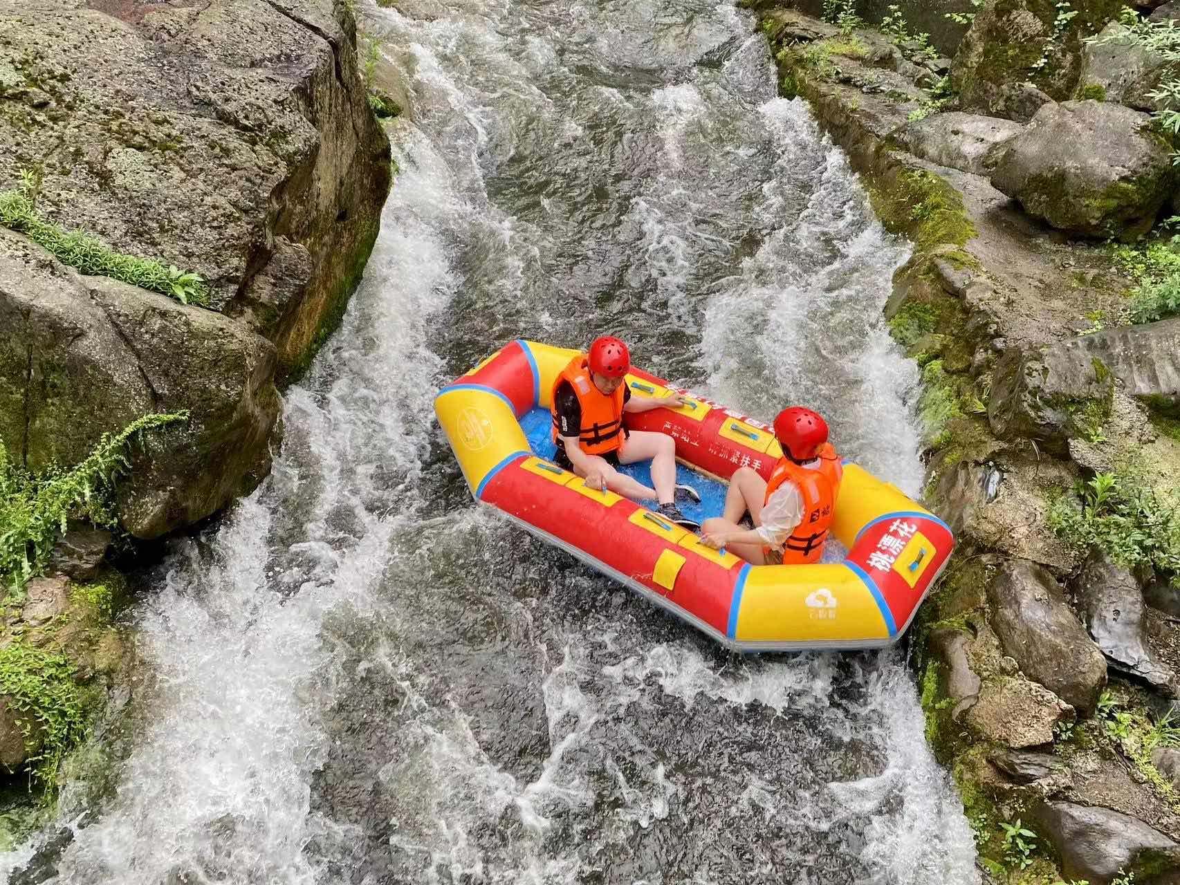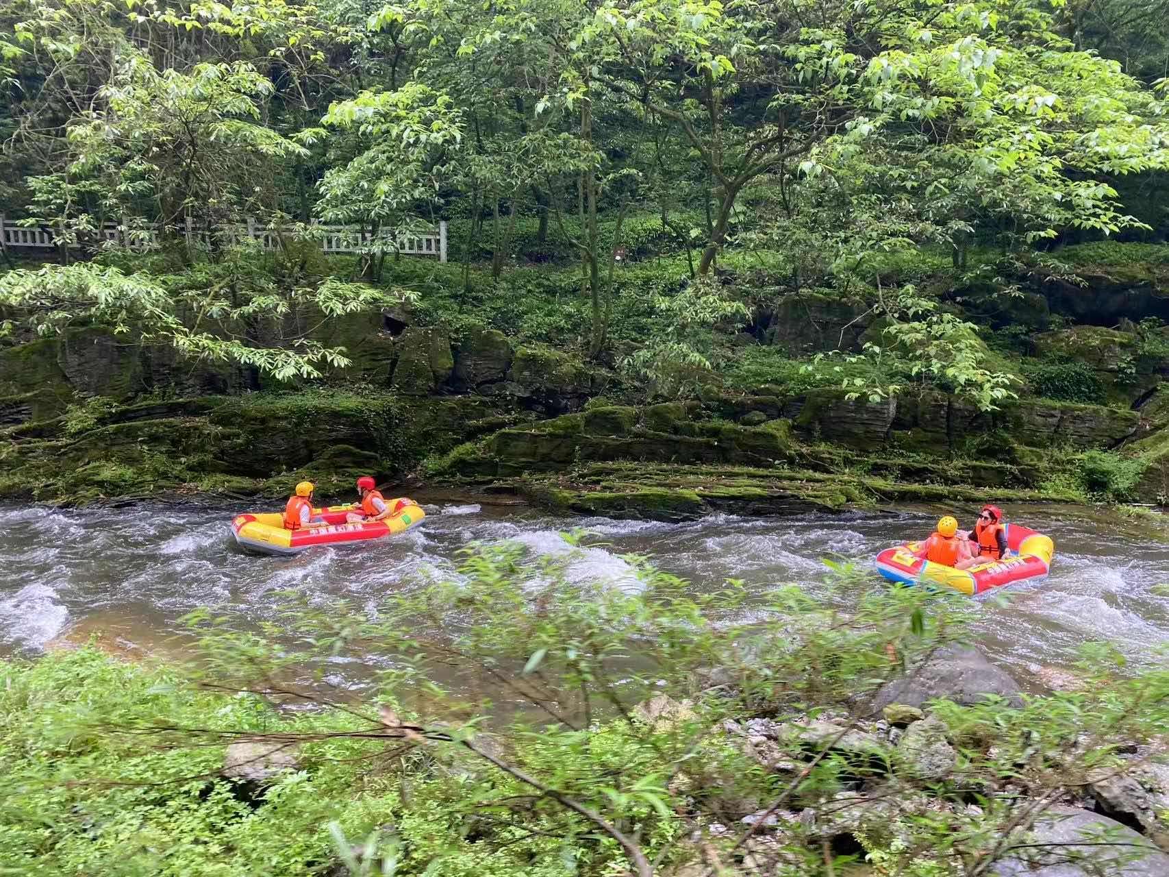 漂流全程10余公里,落差为192米,全程约3个小时,开漂之际6公里的半程漂流体验,桃源河为广大游客提供的爽漂套餐包含了漂流和烧烤的冰与火的双重极致体验,以及新推出的欢乐田园带来的峡谷田园新玩法,让人在尖叫刺激之余更有休闲惬意的余裕,全面感受桃源河带给游客集惊、奇、险、趣一体的快乐,是热爱漂流、热爱大自然的游客不可错过的一个宝藏家庭出游目的地。