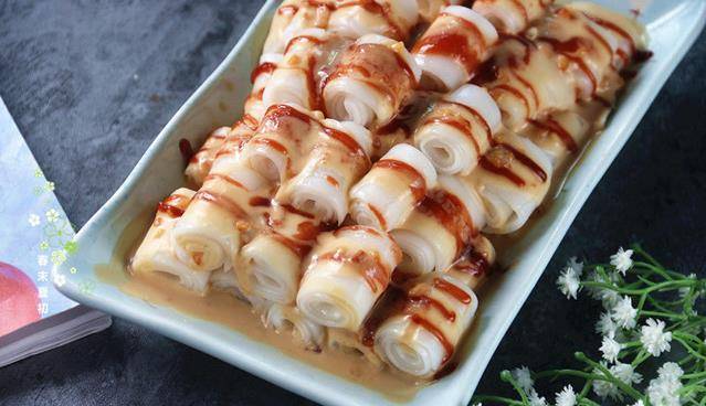 热腾腾、好吃又不腻的三酱猪肠粉出炉了!一定要试试哦,非常好吃,老人家也可以吃,我家小朋友特别喜欢我做的这个,真的当饭吃!