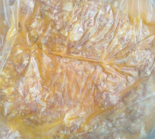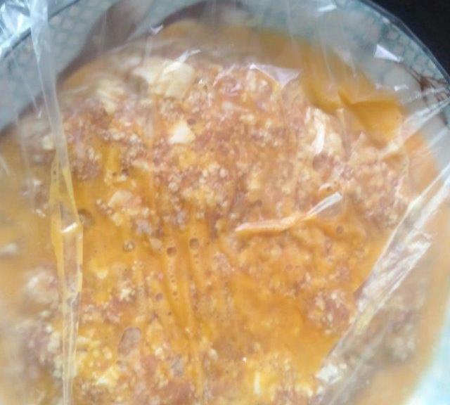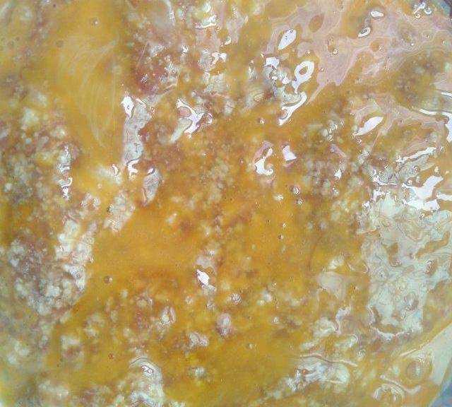 第5步、准备蒸盘。把肉沫压平,表皮上抹上蛋黄。