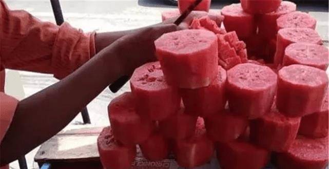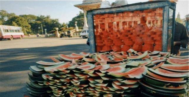 日本的西瓜是按块数来卖的,我国是按照个来卖的,印度的西瓜是按照片来卖的。夏日的印度街道上会看的到,有的朋友买的不仅是片还有“西瓜泥”放到碗中给游客,而且生意都是响当当的。不少国内外的朋友都是大长见识,第一次看到西瓜的独特吃法。