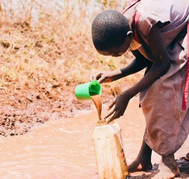 这里没有河,小溪也非常多,基本都是即将干枯的小水坑,水坑里面全都是泥水,混浊不堪,牛羊和一些野生动物也都在这些水坑里面喝水,甚至在水坑里洗澡,所以水坑并不干净,可是对于饥渴的非洲人来说,这是他们活下去的希望,他们只能撇去水上的浮末,尽可能舀一些干净的泥水。