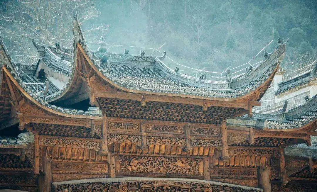 以建筑为例,景区所有建筑都是沿用赣东北民居传统“青砖黑瓦马头墙,高架天井花格窗”的建筑形制和构筑手法,就地取材复原村落,例如岩铺老街采用了大面积的夯土墙、碎石墙搭配木质小窗,极具江西地域特色,其中望仙杨府、胡氏宗祠等古建筑将八仙、八宝、龙、凤、人间帝王、历史人物故事、瑞禽瑞兽、缠枝花、民俗典故雕刻在木、砖、石上,古朴的传统民居与峡谷云雾互相映衬,传统建筑文化与自然生态相得益彰。因为建筑是在地文化特色的复原,游客不会有违和之感,这也是诸多古村古镇所欠缺的。