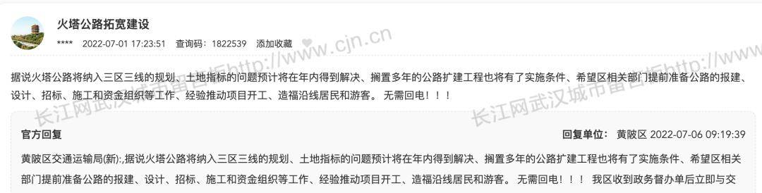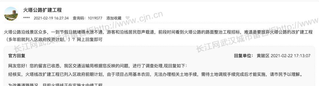 火塔公路,2017年就有网友提议拓宽了,黄陂的回复是有考虑,有计划。