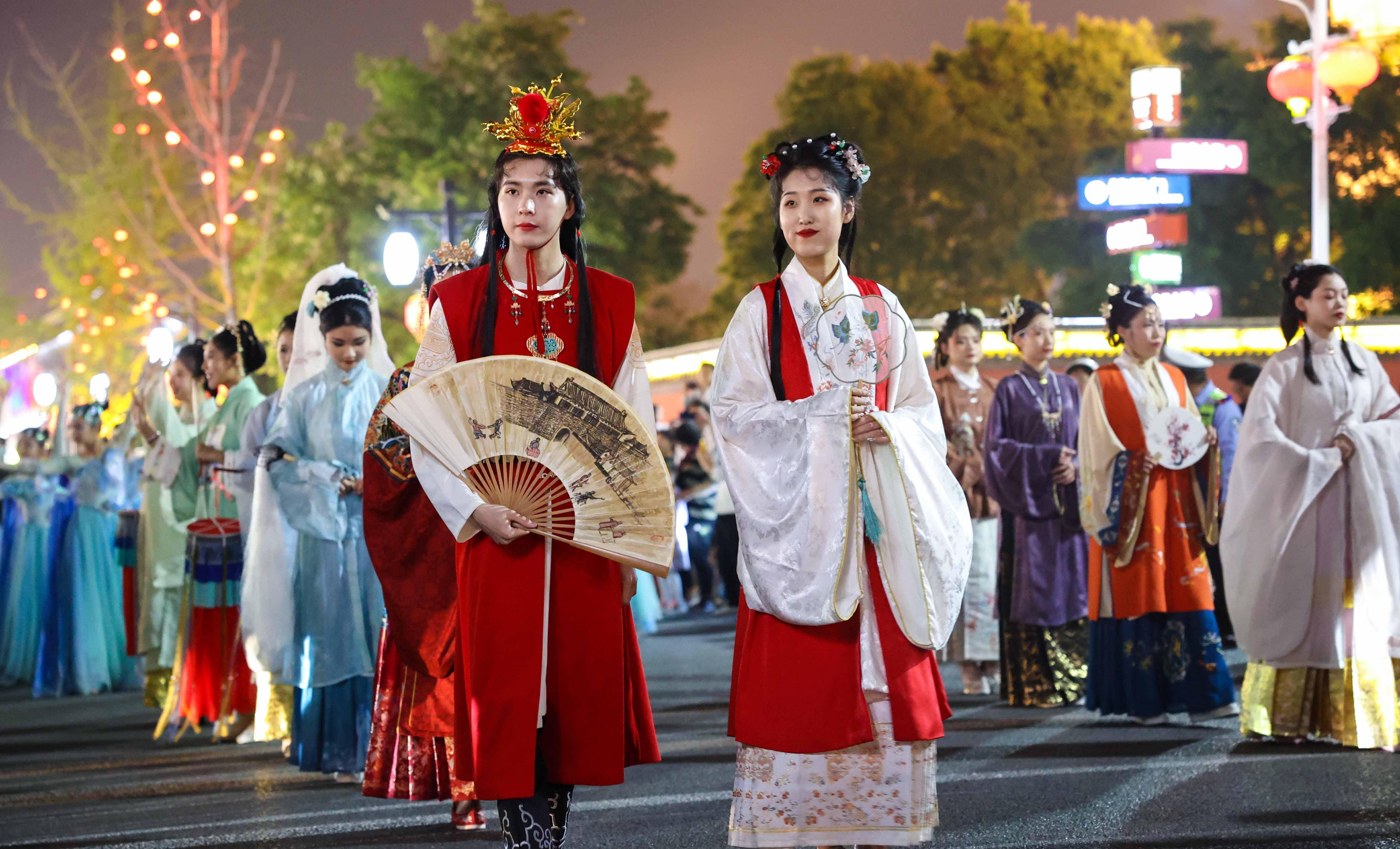 夜巡游队伍中的《红楼梦》金陵十二钗扮演者。