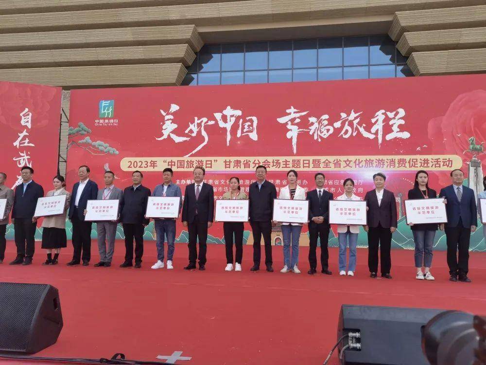 启动仪式上,旅行社代表宣读了《旅行社诚信经营承诺书》,导游代表宣读了《导游人员业务工作与文明旅游工作“一岗双责”承诺书》,旅游志愿者代表宣读了《文明旅游行动倡议书》,省文旅厅发布2023 年全省文化旅游消费促进活动惠民情况;为2022 年度“文明旅游示范单位”授牌、颁发证书,向旅游志愿者授旗。活动现场,由旅行社、旅游景区、星级饭店等旅游经营单位的代表和旅游从业人员、旅游志愿者组成的宣传队伍,开展了“交响丝路·如意甘肃”品牌形象宣传活动,以及“旅游文明行为指南、旅游文明行为公约”“安全旅游伴你行”公益宣传活动。我市崆峒山大景区管委会荣获2022 年度“文明旅游示范单位”。