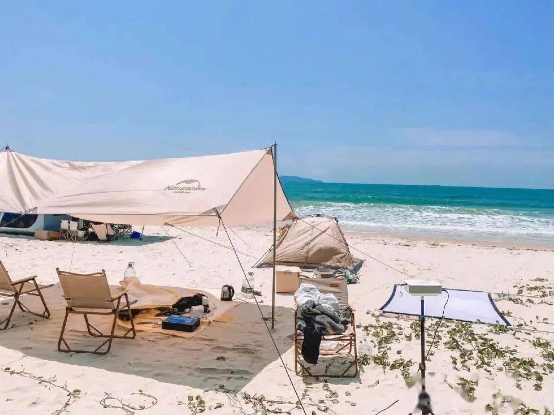 在这里,你可以踩着细细的沙,于清澈的海水中嬉戏;也可以随意地坐在帐篷里,感受海风拂面,倾听浪花的声音;也可以架起一支鱼竿,来个观海垂钓。