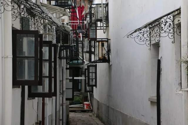 厚实庄重的石库门,铁艺雕花的窗棂,经过岁月打磨的木门,既洋气,又不失江南韵致。