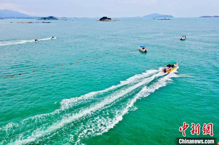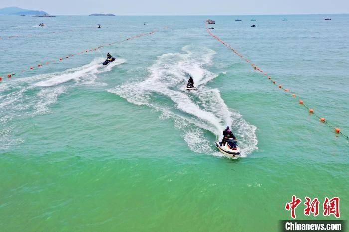 图为游客在平潭海边玩摩托艇。 王东明 摄