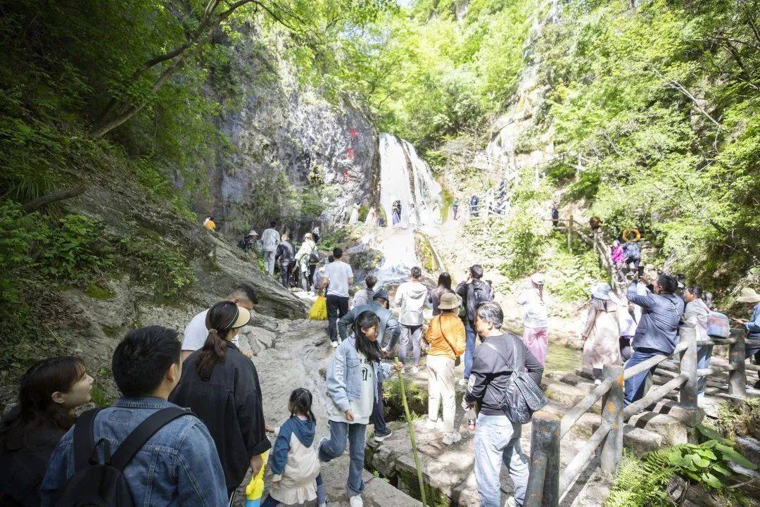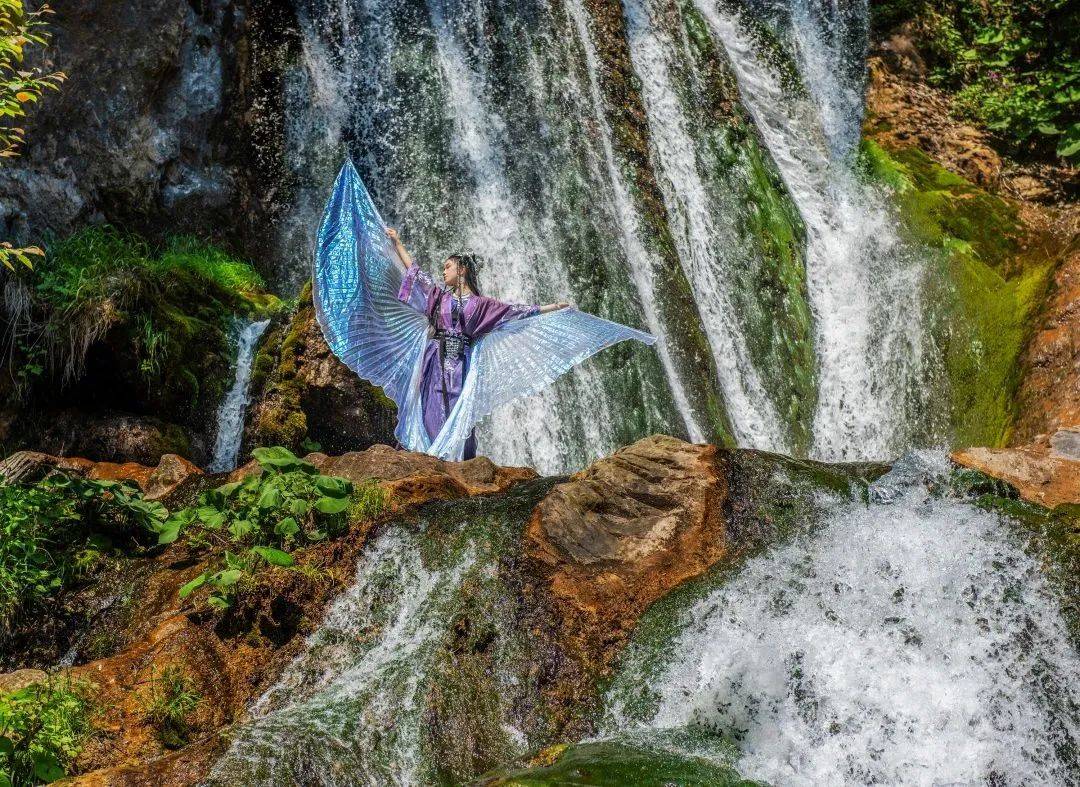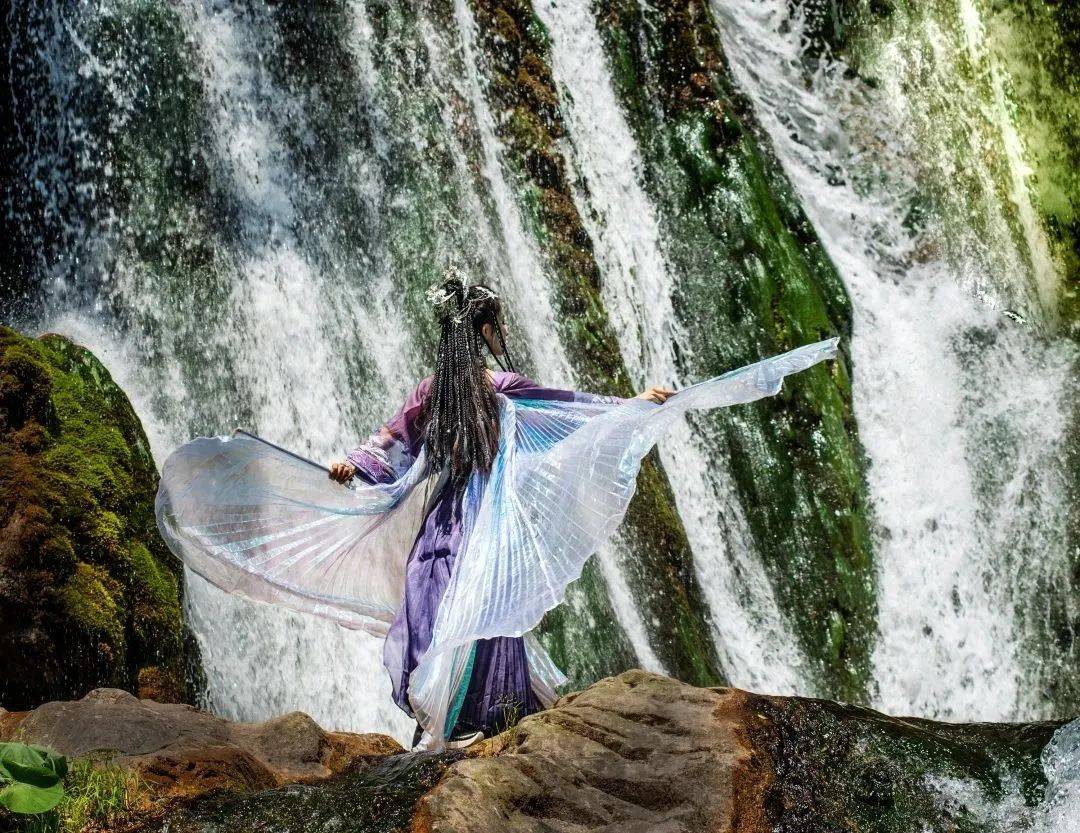 5.20这天,在重渡沟风景区,宋先生手捧鲜花,在倾泄而下的瀑布前,冲着爱人大声表白。正在瀑布下游玩、没一点思想准备的赵女士稍一凝神,就被女伴拥到宋先生面前,宋先生单膝跪地,给女友送上手绢,戴上发簪,披上一件代表吉祥美好的美人蝶服装,用古老的仪式表达爱意。