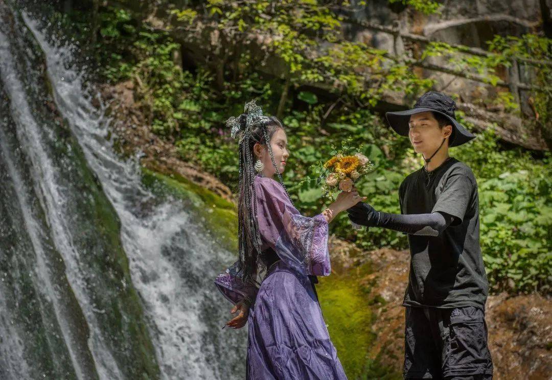 河南郑州的宋先生和赵女士谈恋爱数年,一直想给她制造一个浪漫的求爱场景,5.20网络情人节到来之际,宋先生构思、设想了许多种表白方式,最后忽然想到数年前两人曾过来重渡沟旅游,在瀑布下一吻定情,就决定再来重渡沟,在他们定情的地方演绎一场浪漫的“穿越千年去告白”。他的策划得到几位朋友的支持,于是就有了刚刚发生的这一幕。