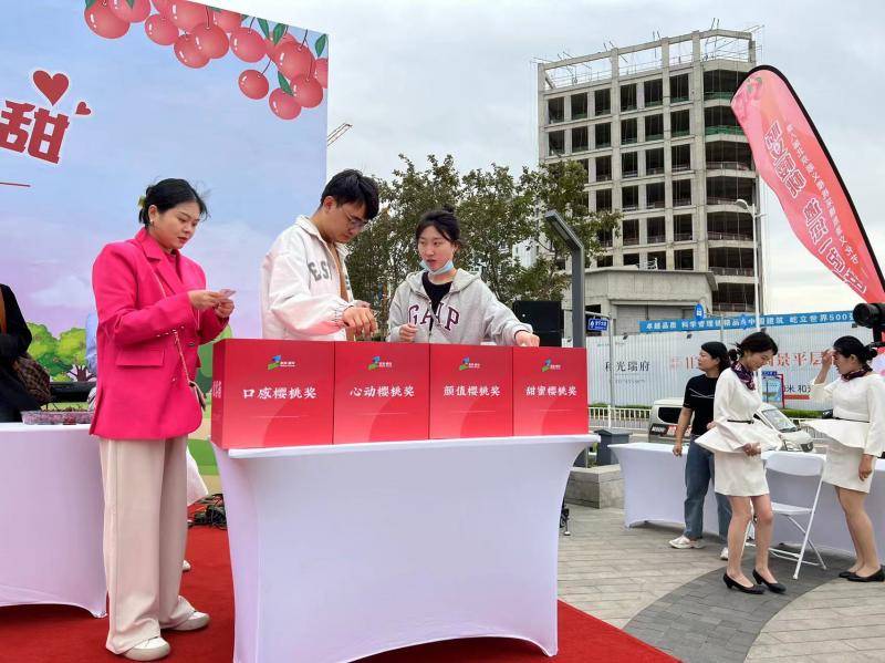 参加第八届顺义樱桃采摘旅游文化节开幕式的樱桃园共9家。现场举办的顺义樱桃挑战赛,立足樱桃的色香味等维度进行细致评选,最终投票评选出了四个奖项——甜蜜樱桃奖、颜值樱桃奖、口感樱桃奖和心动樱桃奖。四个奖项,显示了顺义樱桃是甜蜜的、令人心动的、有颜值的,而且口感非常好。此外,现场还设置了甜蜜市集,展示顺义特色文旅资源。