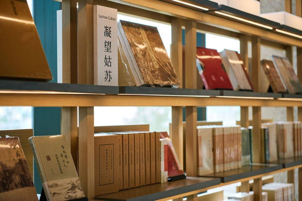 “凝望姑苏”是朵云书院为相城店特别设计的本土书架板块。苏州古称姑苏,人文荟萃、历史悠长,园林雅致冠绝天下,丹青圣手层出不穷,手工艺品更是通过海上丝绸之路行销全球。该书架汇聚了古今苏州文学、绘画、美学等领域诸多文化名人的著作。