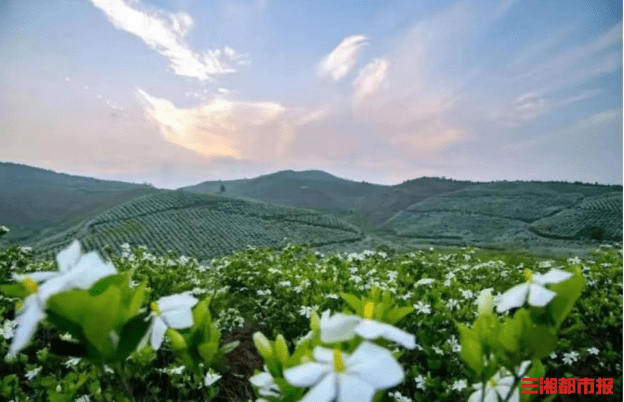 近年来,喻家坳全面推进“4+2+N”的产业布局,致力于打造农文旅融合发展的特色小镇。经过多年的精心培育,栀子产业蓬勃发展。截至目前,乡域内栀子种植面积已达万亩,预计今年可摘栀子鲜花300万斤,预计综合年产值总额达4500万元,可带动超过1000人就业。