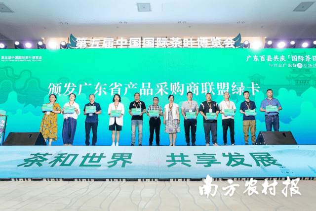 活动还现场发布了《广东茶叶采购导图》,邀请地市代表上台推介特色好茶,颁发“广东省农产品采购商联盟绿卡”,进一步打通广东茶与全球采购商的产销合作“绿色通道”。