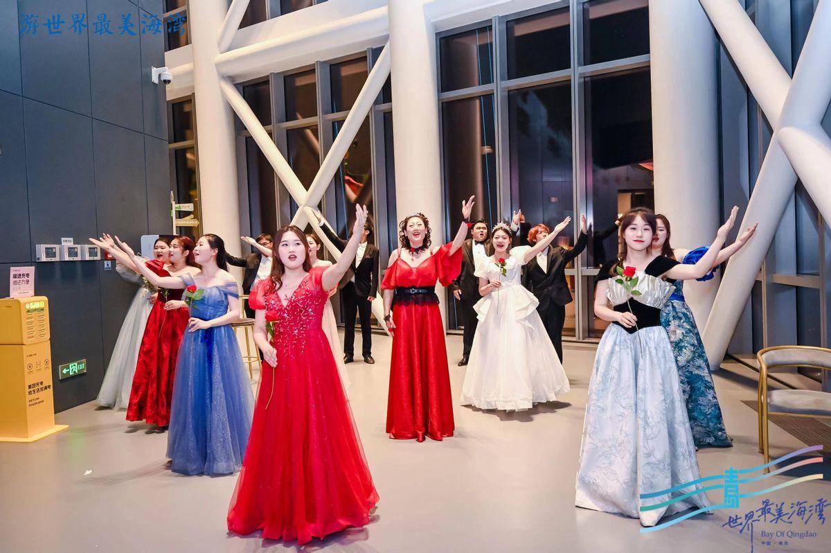 81层,330米,360度,这里是青岛云上海天城市观光厅,夜色降临,一场名为“海大声歌之夜,海天最美之约”的演出吸引了众多游客的到来。中国海洋大学艺术系声歌团青年歌唱家郑琳导师带着团队的青年演员们,带来了包括歌剧片段演绎、情景式重唱表演,对白戏剧台词等高雅艺术,全程无麦原声演唱,以及西洋、民族乐器与人声的跨界融合,都成为了本场音乐会的亮点。与常规化进剧场、剧院、音乐厅欣赏有所不同,观众在悠闲自得,品阅咖啡文化,欣赏美景的同时,云上海天艺术中心,全新的环绕一步一景式舞台设计、全情的观众与演员沉浸式互动体验,与声歌团极具个性,独一无二的原创表演完美融合,相得益彰。全新的舞台,全新的版本,为观众带来了全新的感受。