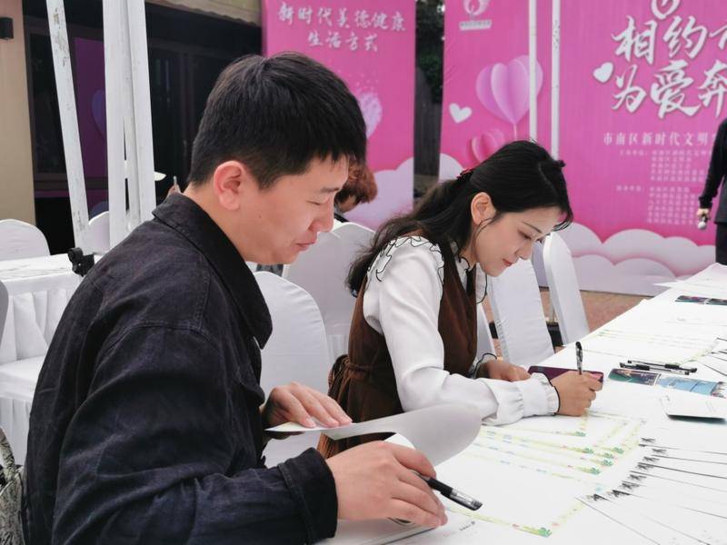 现场还有知名书法家挥毫泼墨,书写“爱”的印记,并赠送给市民游客,用传统文化展现市南浪漫。
