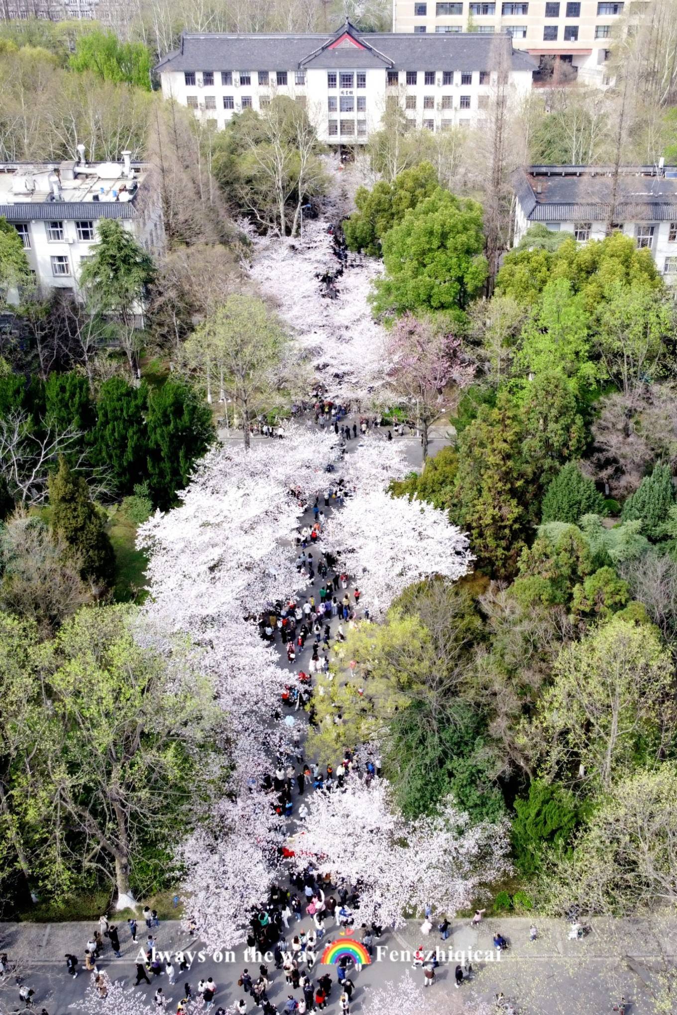 来南林大吧,浪漫唯美的校园樱花隧道,如电影场景般美得让人窒息。