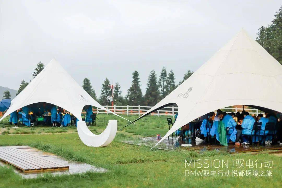 伴随着活动的开始,嘉宾们一起聆听草地音乐会,打卡轻奢露营地的趣味拍照点,当夜幕降临,大家齐聚在浪漫的天幕帐篷里举杯共饮,开启精致的晚餐,身处于大自然的怀抱中,嘉宾们也多了几分野趣,现场虽然下着小雨,但活动氛围依旧热烈,一起陶醉在了明月山的美好之中。
