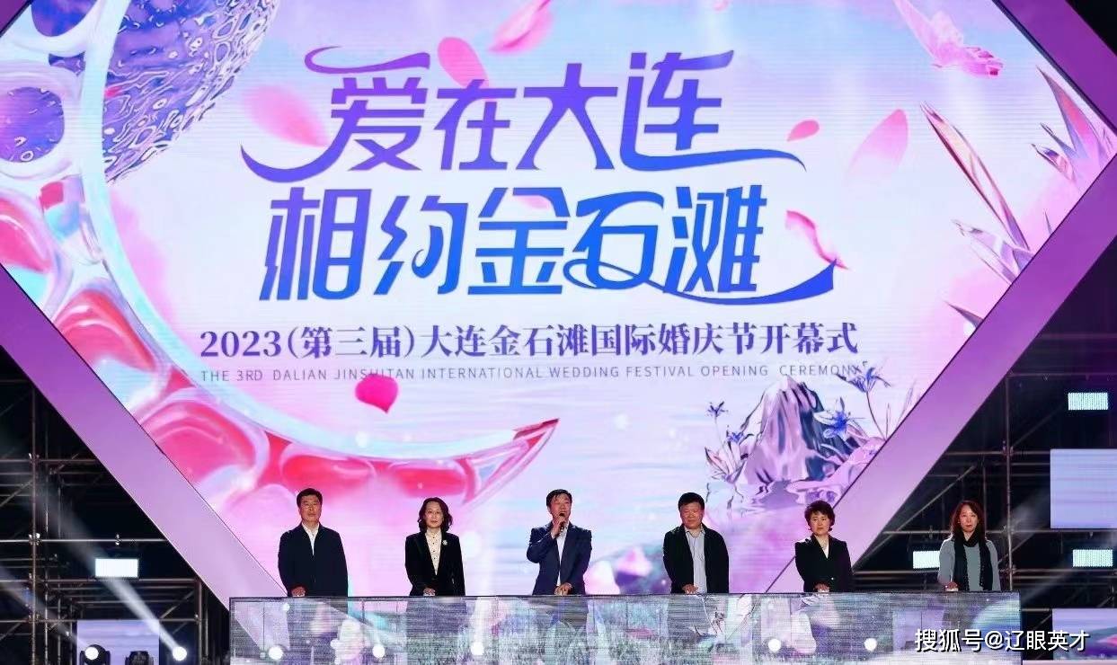 5月20日 19:38在大连市金石滩快乐海岸举办的第三届大连国际金石滩国际婚庆节的开幕式仪式正式拉开婚庆节系列活动帷幕。辽宁省文化和旅游厅副厅长卢锡超出席仪式并宣布活动启幕。大连市文化和旅游局一级调研员胡光旭,大连金石滩国家旅游度假区党委书记、管委会主任柳金红,金普新区党工委委员、宣传部部长佟欣秋,区人大常委会副主任杨永全,区政协副主席杨航共同登台为婚庆节启幕。
