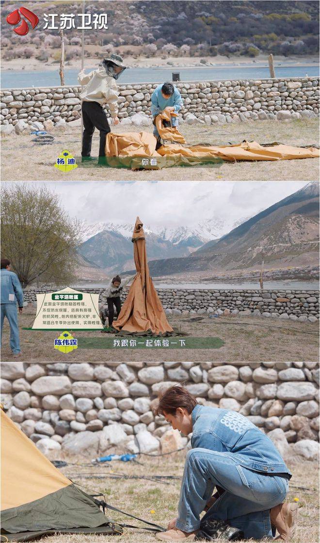 面对高难度挑战,王琳凯不停发问,杨迪无力招架,甚至中途“逃跑”。陈伟霆眼见帐篷搭建失败,前来相助,分享搭建帐篷的独门妙招。围观的魏大勋和杨迪也来搭把手,帐篷终于逐渐成型。