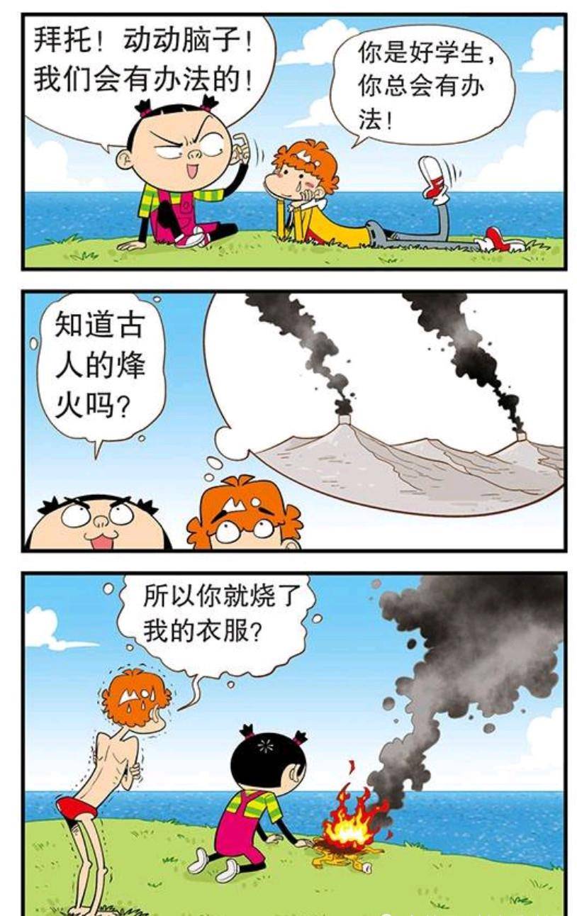 大脸妹想出了一个古人的方法,烽火求救!而起火的东西,就是用阿衰的衣服!看到这里,我感觉我的智商被按在地上狠狠的摩擦,几件衣服能起多大的烟,你在逗我玩吗?