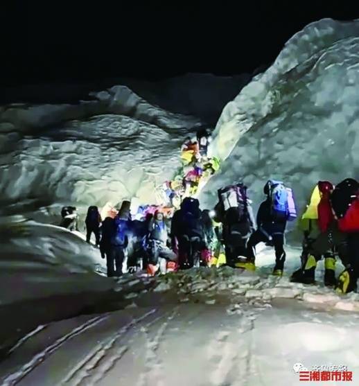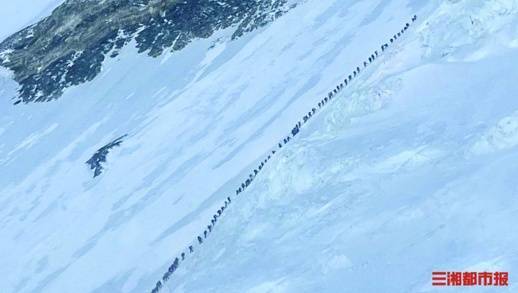 2019年5月,拥堵再度上演。据媒体报道,为了登顶,两三百人沿着危险的悬崖排起了单列长队,在海拔8000米以上的极端环境下等候了数个小时。数个小时排队造成的延误,会消耗超出预期的氧气和体力,也会增加冻伤的风险。