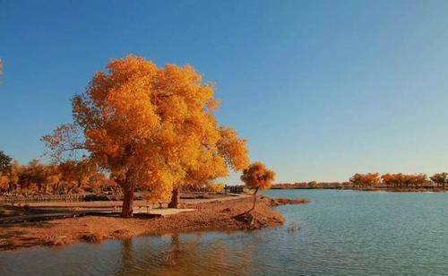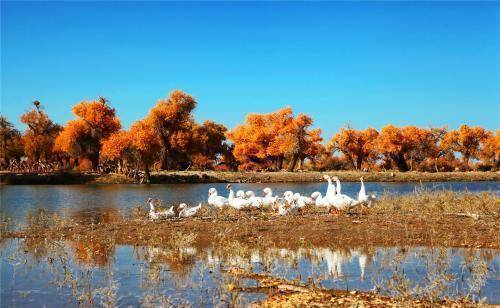 这里有弱水的古老传说,也有传承千年生命的鲜活。如果要给深秋找一个注点,那无疑是胡杨林,面对即将到来的寒冬,胡杨林用它最美的一刻彰显着自己的顽强和不屈,也给大自然增添了一抹亮色。