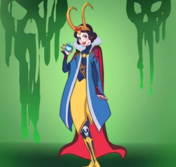 这位画师的笔下,温柔善良的白雪公主突然转变成凶狠狡诈的洛基,这一点是我们没想到的。看到白雪公主×洛基的设定,我们也能感觉到一种带劲的感觉,突然觉得白雪公主尝试一下这个风格,也很不错。不过,要是白雪公主变成这个样子,她和毒皇后的对手戏确实好看了。