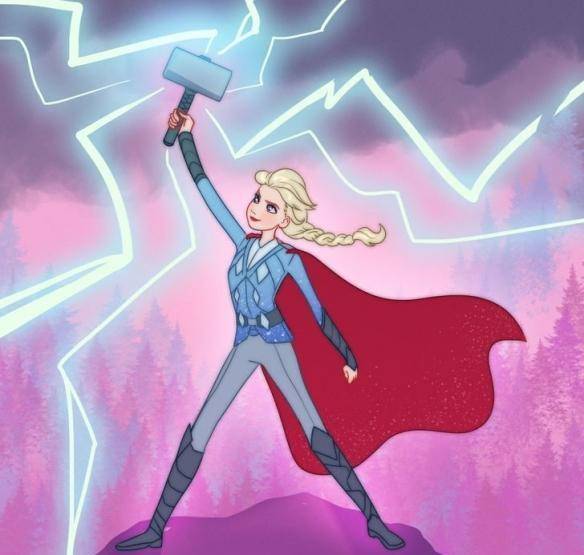 艾莎公主化身雷神托尔,安娜公主化身黄蜂女