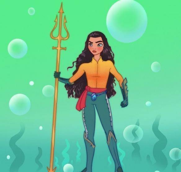 除了上面的迪士尼公主之外,还有化身海王的莫阿娜公主、化身神奇女侠的仙蒂公主、化身绿巨人浩克的梅莉达公主。