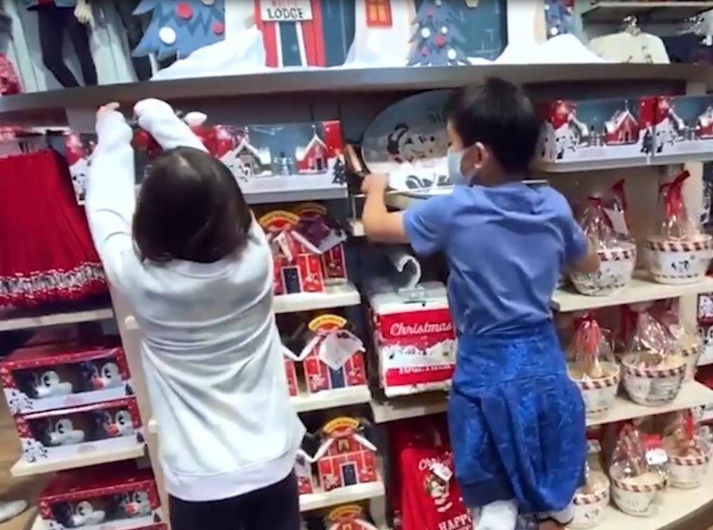 Vivian的两个孩子正在挑商品