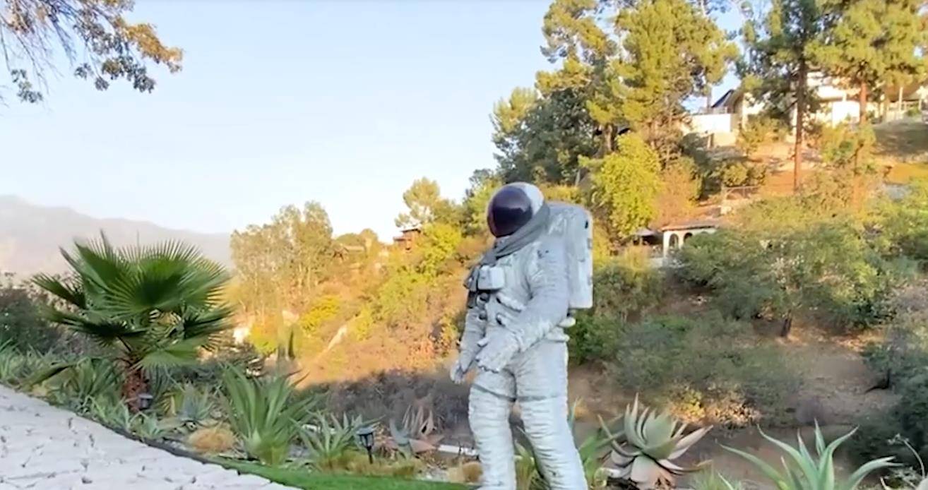 这位朋友的家非常有格调,外观看上去像宇宙飞船,花园的小路旁还有太空人模型助阵。