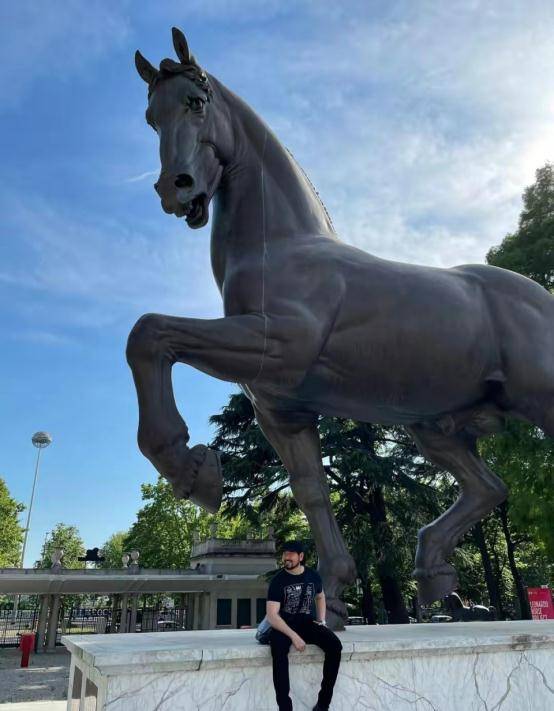 他在街上闲逛,还拍了一张旅游照。照片当中,费翔穿着一身黑色休闲装,背着背包戴着帽子,坐在一个马的雕塑上面拍照,可能是天气有些热,能够看到他满脸通红,不过表情来看是很享受的。虽然没有之前那么瘦了,但是看起来也还是很结实的,略微有些发福,但是胳膊上全是肌肉,这个身材也是比较不错的。