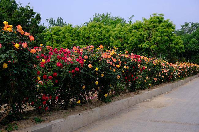 花乡街道花乡公园相关负责人王全忠介绍,目前,花乡公园现有的月季种植面积达300余亩,种植有九大系列,两百余种,50万余株。其中,藤本月季有“光谱”、“御用马车”等品种,花团锦簇、灿烂绽放;大花观赏月季不仅保留了传统“红双喜”等品种,还增添了香气馥郁的“吉普赛女郎”;“果汁阳台”、“红苹果”、“火龙果”、“迷你月季”等欧月色彩丰富、婀娜多姿,更有古桩独本树状月季、精品独杆月季棒棒糖、造型月季等独特品种点缀园中,共同打造出梦幻多彩的“月季派对”。