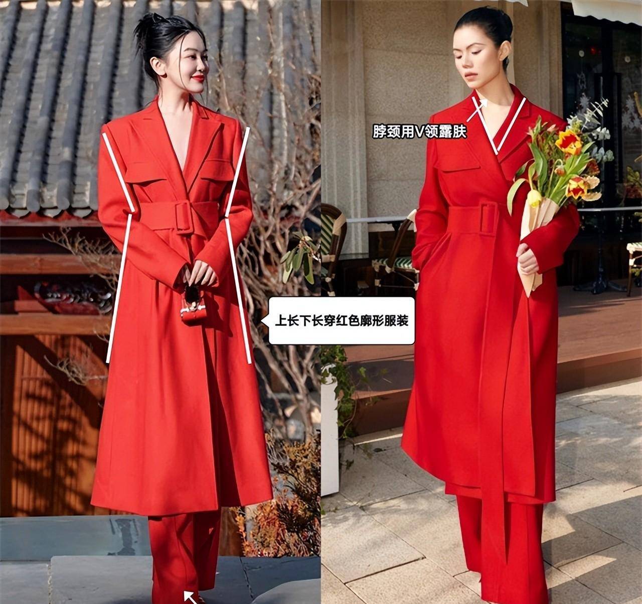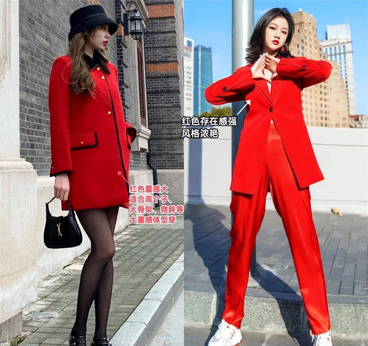 根据身材的长相和特点选择合适的款式,还可以让红人“人衣合一”。女士和少女的红色穿搭适合,例如,身材矮小、骨架娇小或长相柔美的姐妹。
