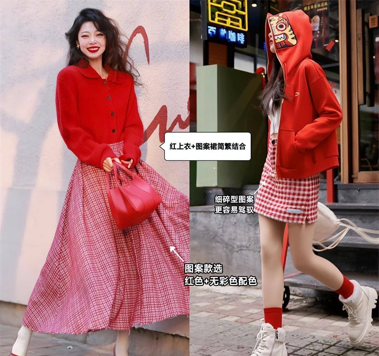 第2点。根据自己的身材和风格调整红色套装的颜色