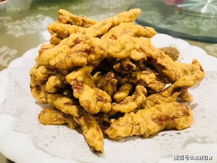 有着悠久传统制作工艺的博山烤肉,是把里脊切长条,先腌然后挂糊,再炸两次,其特点是又香又麻,味道醇香,肥而不腻。