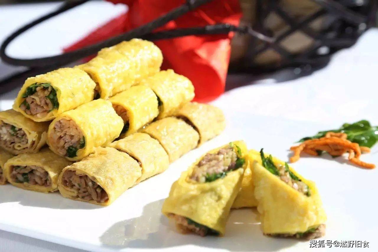 蛋皮裹上提前炒过的馅,两边封口再用淀粉水封成一个长条,下锅炸。鸡蛋皮炸后还带着浓浓的蛋香气,不能错过。