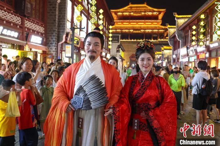演员扮演“诸葛亮”“黄月英”巡游襄阳古城。 杨东 摄