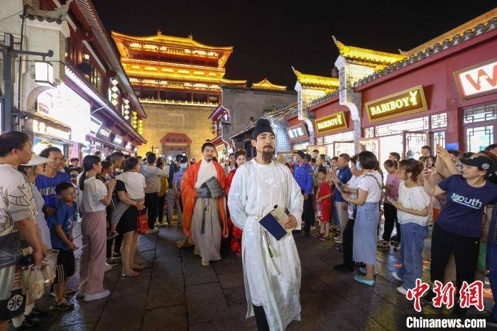 演员扮演“孟浩然”等巡游襄阳古城。 杨东 摄