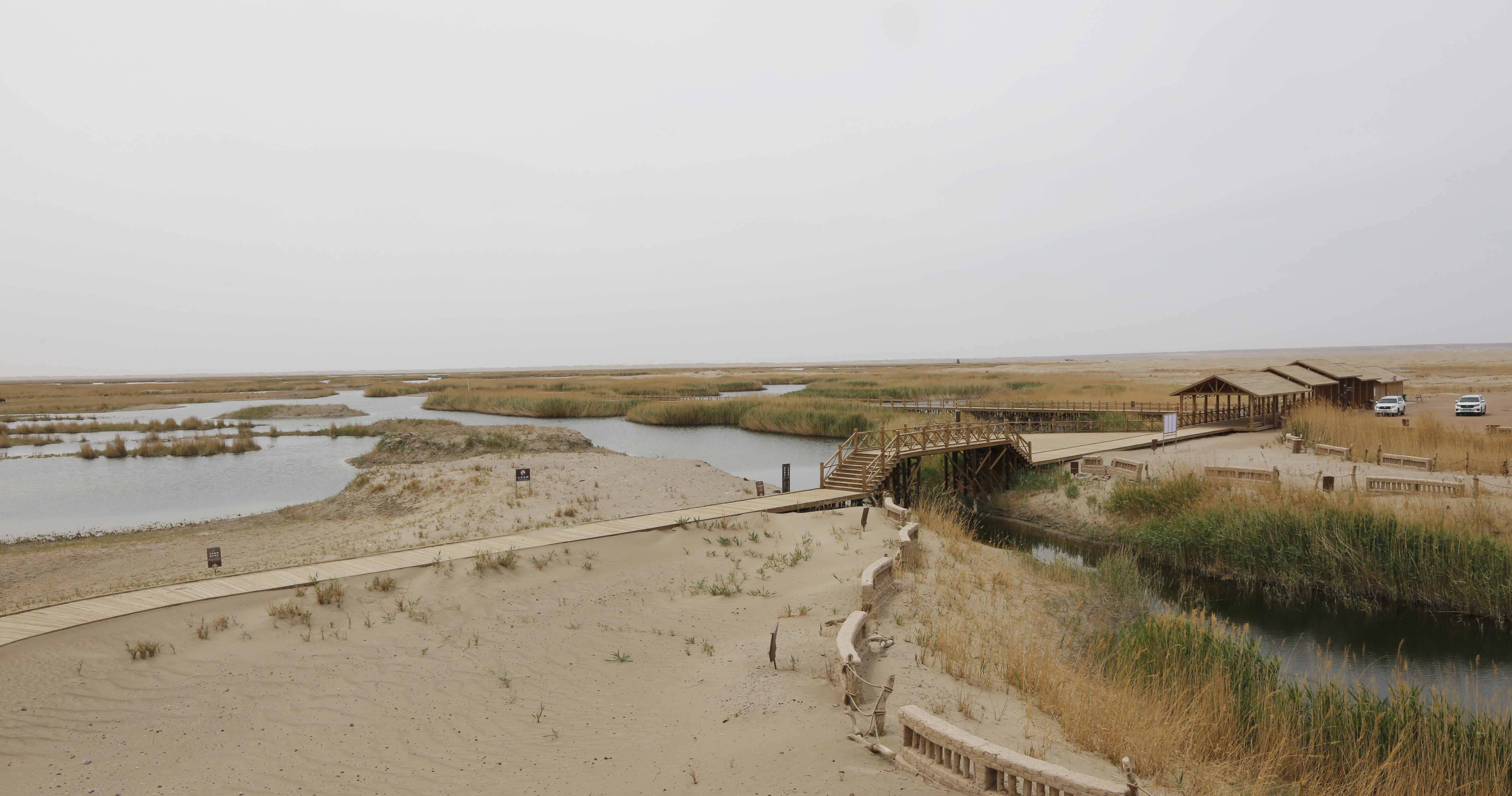 5月20日与朋友一起到古居延泽景区游玩。该景区位于312省道595公里处,G7京新高速公路和临哈铁路紧邻景区北侧穿越,高速公路在景区西侧设有“天鹅湖收费站”匝道。