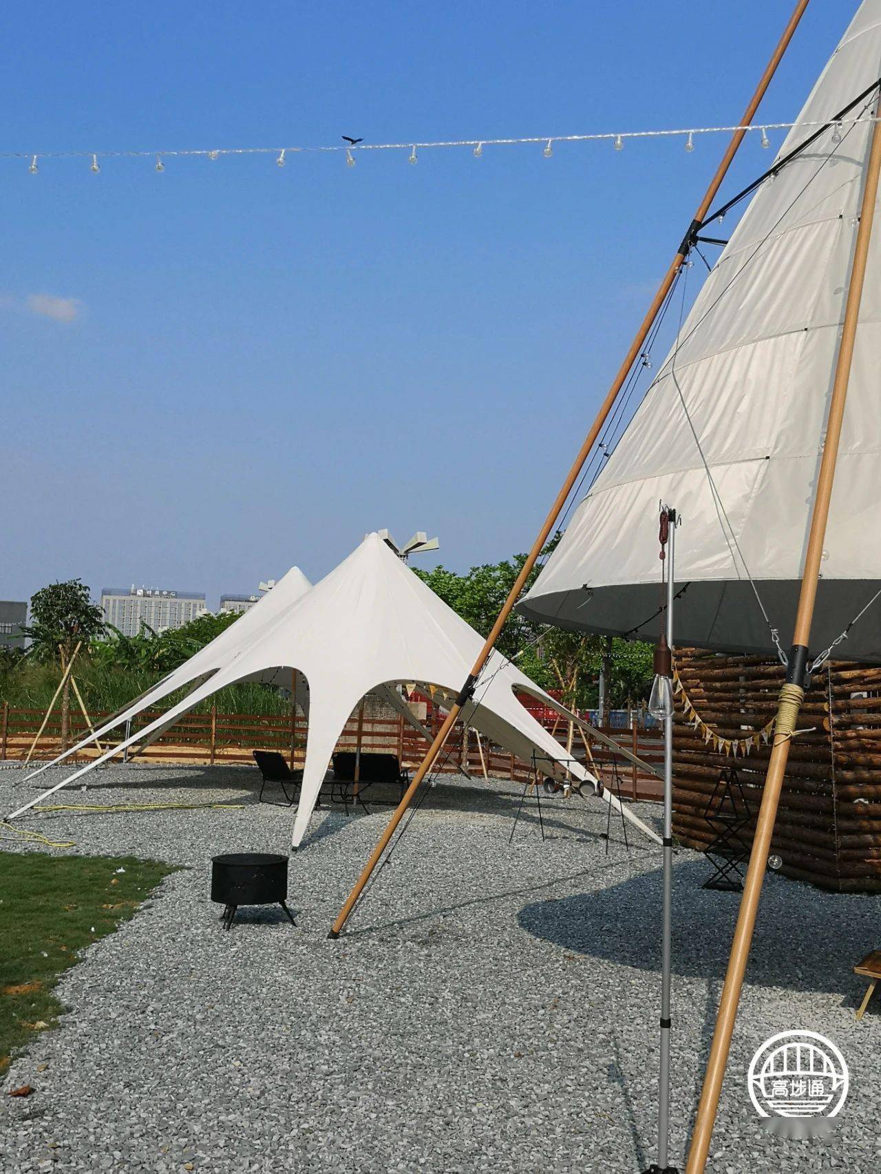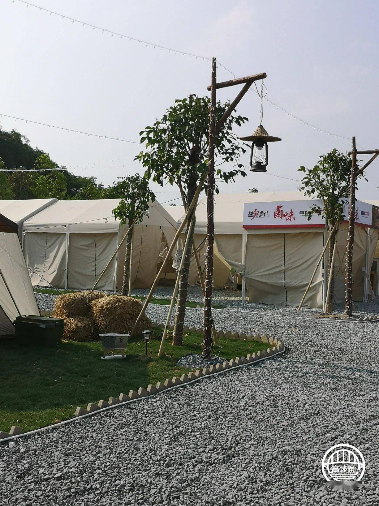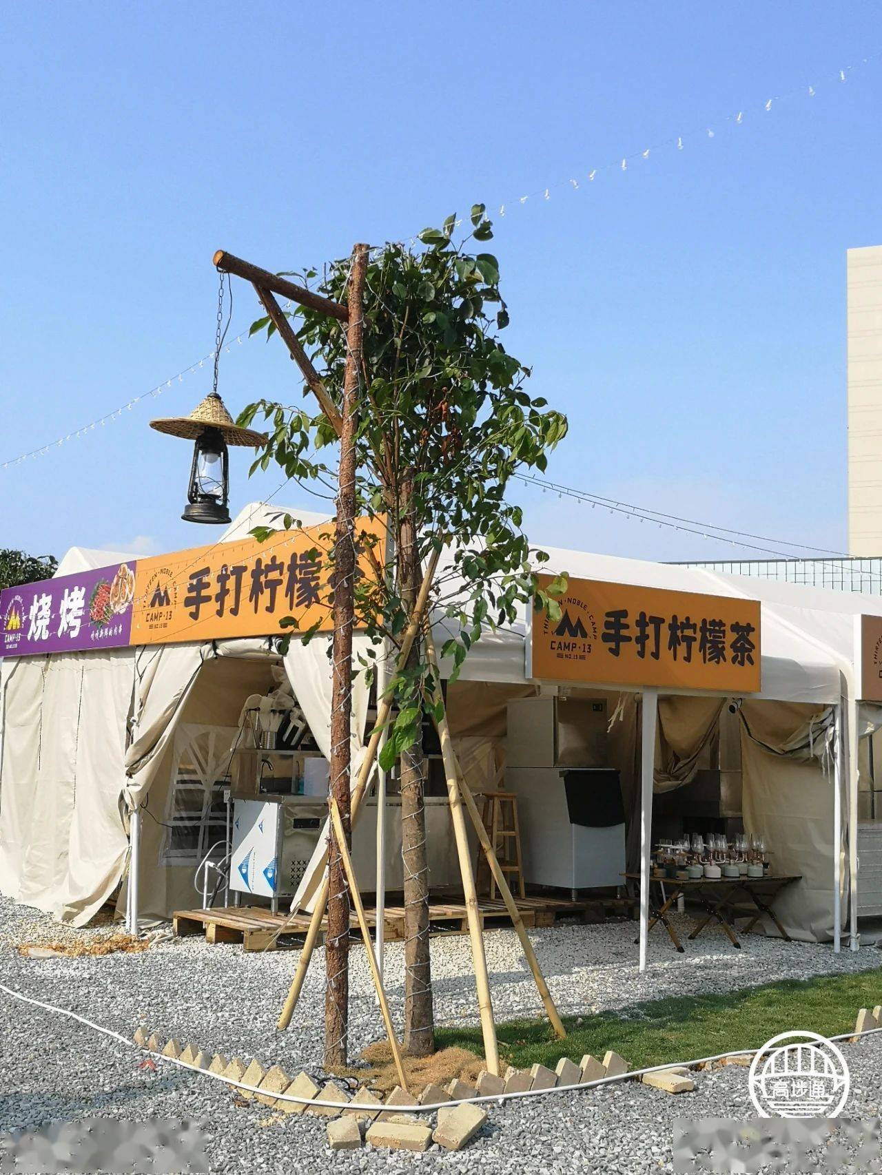 营地在高埗政府隔壁的位置,环境好,进去路道两旁充满原生态自然的元素挂件,简约舒适的帐篷,满满的惬意感!这里有各式各样的美食店铺,饮料、零食都可以解决;夏日必备的手打柠檬茶、夜晚下的烧烤与啤酒、特制卤味等等。