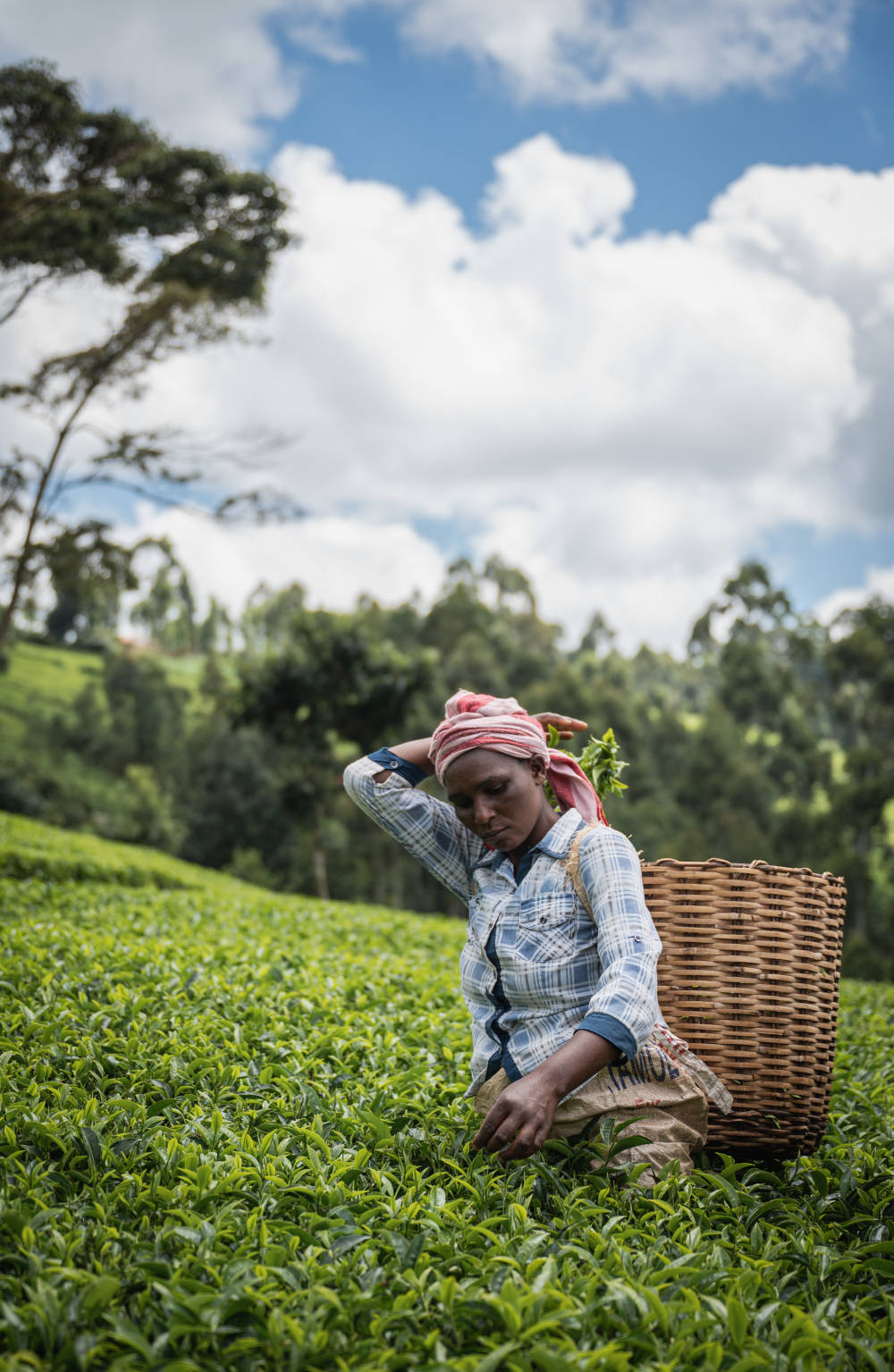 这是2023年5月4日,工人在肯尼亚首都内罗毕附近的茶园采茶。 新华社记者 王冠森 摄