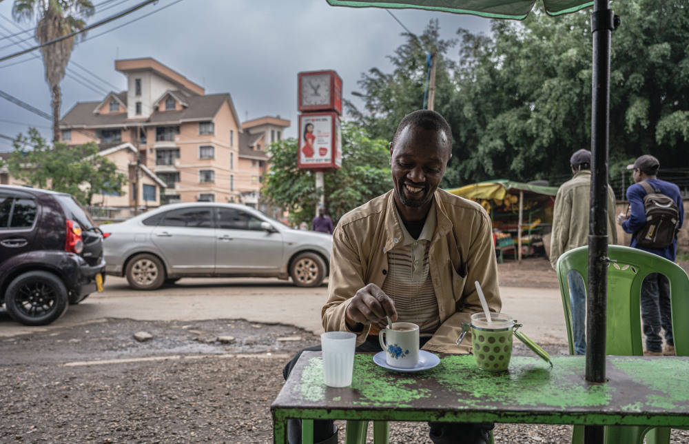 这是2023年5月17日,市民在肯尼亚内罗毕街边饮用奶茶。新华社记者 王冠森 摄